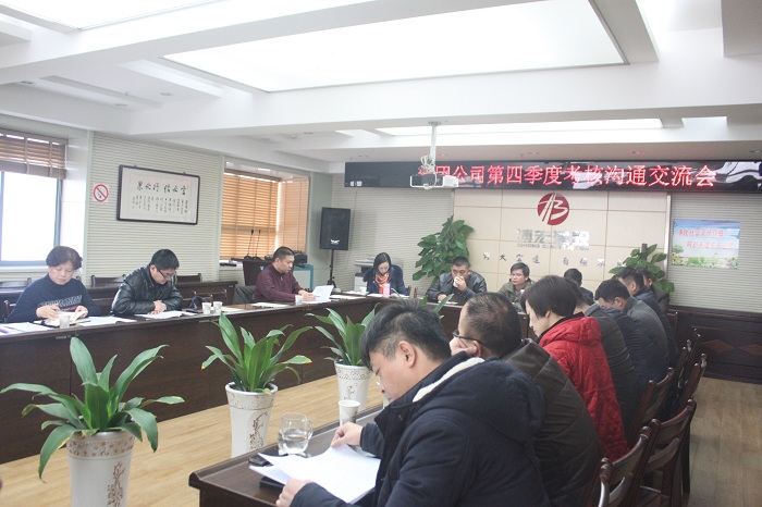 2017年1月2日,迎接新年鐘聲的敲響,集團公司第四季度考核溝通交流會在我公司順利召開,集團總經理虞志鵬、黨委副書記陳穎、副總經理邢榮斌以及集團各部門負責人蒞臨指導工作。我公司總經理錢濤,支部書記周紅,副總經理秦林等共58人參加了會議。