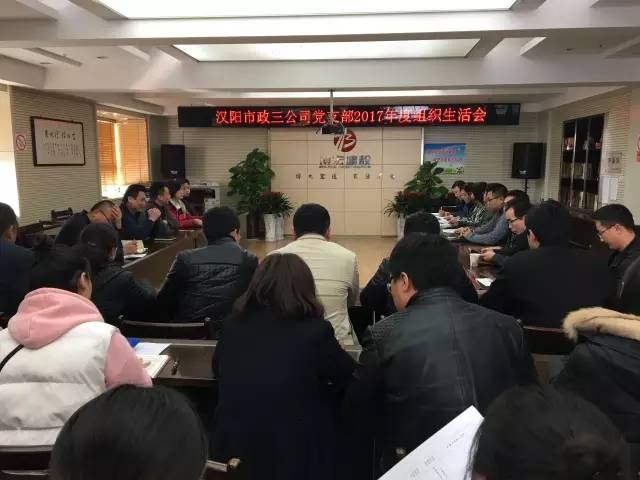 按區委文件要求,報集團黨委審批,漢陽市政三公司黨支部于3月7日正式召開2017年度專題組織生活會,會議有幸邀請到集團公司黨委副書記、紀委書記陳穎同志蒞臨指導,會議全程在精心組織下樹立取得了預期效果。