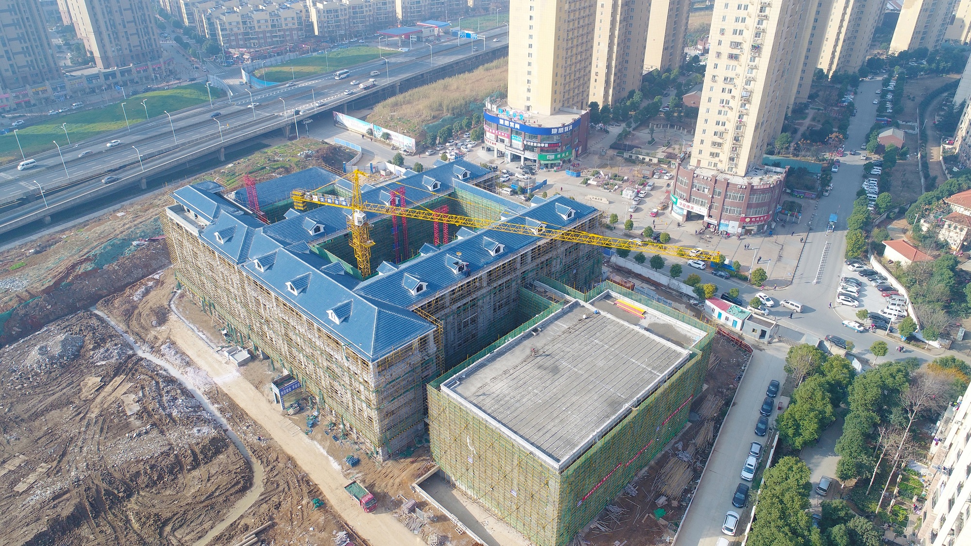 漢陽區(qū)芳草中學(xué)施工工程,坐落在楊泗港快速通道與龍珠路交匯處附近,毗鄰南國明珠小區(qū),由漢陽市政施工建設(shè)。自開工建設(shè)以來,項目部精心組織,周密籌劃,先后克服了大量出土、夏季高溫、大跨度房建結(jié)構(gòu)施工、大坡度斜屋面施工等建設(shè)難題,同時在建設(shè)過程中始終不忘業(yè)主期盼,堅持美觀與實用兼顧,為此項目部在特殊部位采用了GRC密肋梁工藝,屋面瓦選材及施工過程中參考臨近高檔小區(qū)建筑風(fēng)格,與周邊建筑群完美融合。