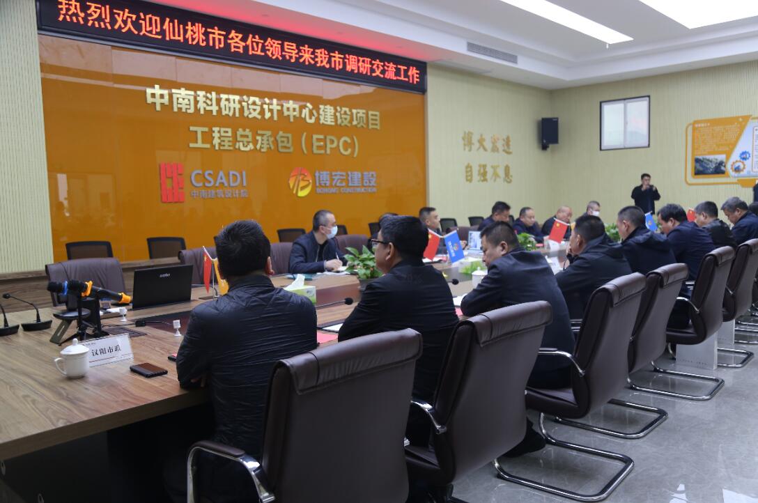 現(xiàn)場調(diào)研結(jié)束后,調(diào)研座談會在中南科研設(shè)計中心項目舉行。仙桃市人民政府、仙桃市住建局,與武漢市城建局、漢陽區(qū)建設(shè)局、漢陽市政等單位代表共同參會。
