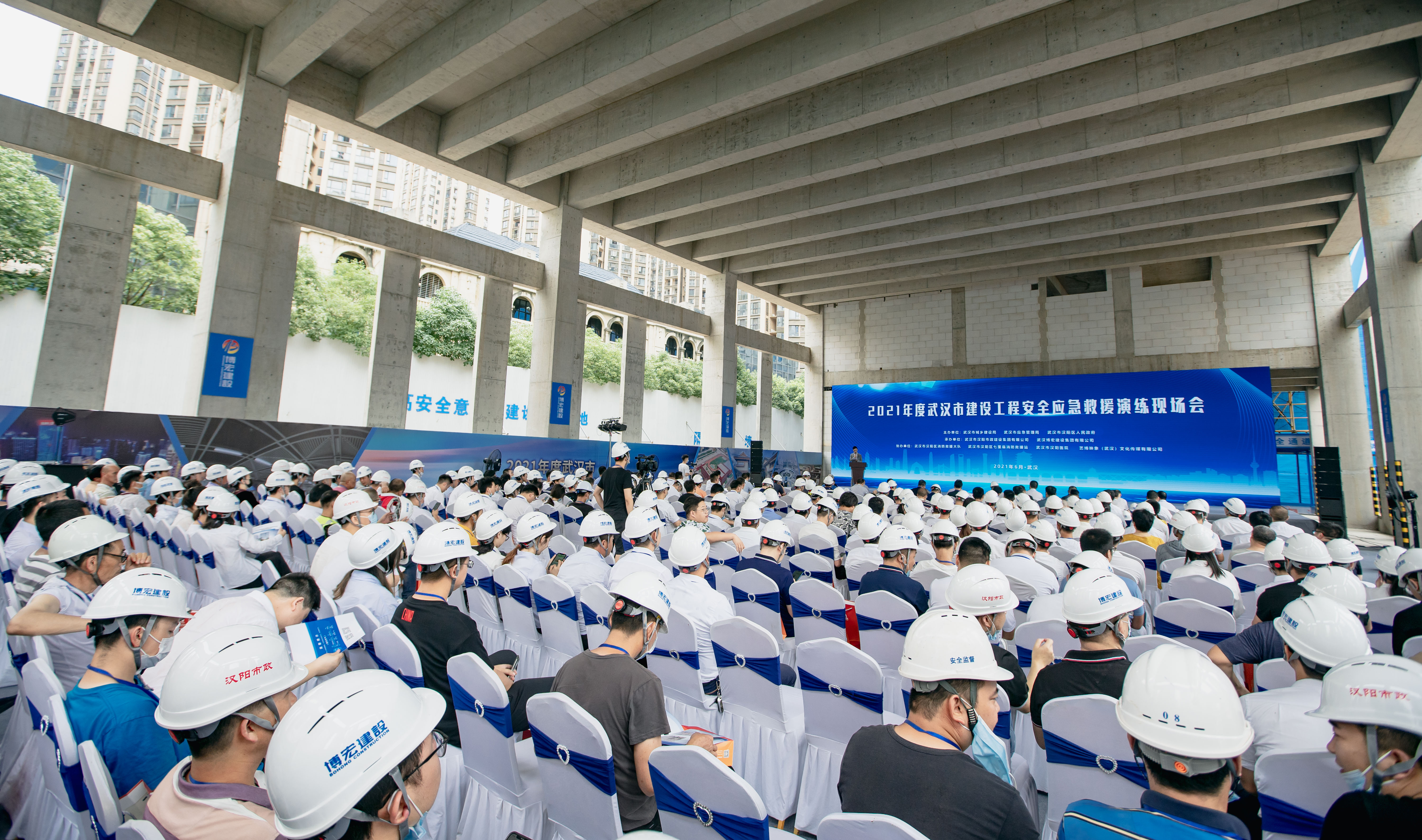 以全國第20個“安全生產月”為契機,“2021年度武漢市建設工程安全應急救援演練現(xiàn)場會”活動在漢陽市政博宏公司漢陽市政建設大廈項目現(xiàn)場順利舉行。武漢市城鄉(xiāng)建設局副局長榮先國、武漢市應急管理局副局長喻思源、武漢市漢陽區(qū)副區(qū)長蔡松、湖北省質安總站副站長周偉、武漢市安全站站長楊劼、武漢建筑業(yè)協(xié)會秘書長李祥林、漢陽區(qū)建設局局長胡紅勝、漢陽區(qū)應急管理局局長李漢光、各區(qū)建設局、相關建設單位及同行施工單位共計400余人參加本次活動。活動由漢陽市政集團公司、漢陽市政博宏公司共同承辦。
