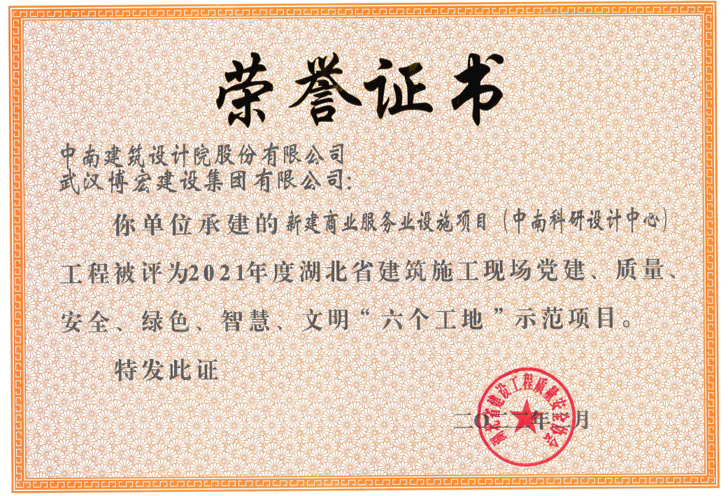 近日,2021年度湖北省建筑施工現(xiàn)場(chǎng)黨建、質(zhì)量、安全、綠色、智慧、文明“六個(gè)工地”評(píng)比結(jié)果正式公布,全省共計(jì)97項(xiàng)工程被評(píng)為示范項(xiàng)目,博宏建設(shè)新建商業(yè)服務(wù)業(yè)設(shè)施項(xiàng)目(中南科研設(shè)計(jì)中心)和博宏建設(shè)旗下合資公司湖北長(zhǎng)投建筑工程有限公司承建的荊門龍山中央商務(wù)區(qū)7#地塊項(xiàng)目雙雙獲獎(jiǎng)。