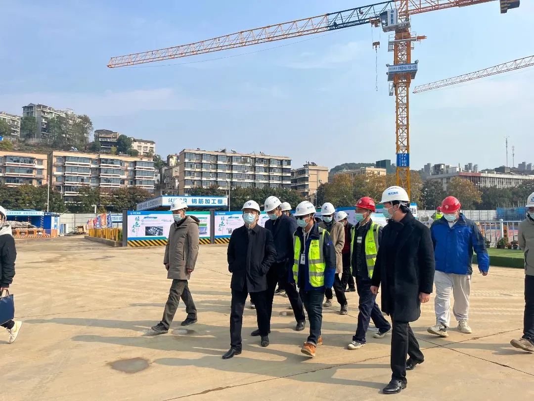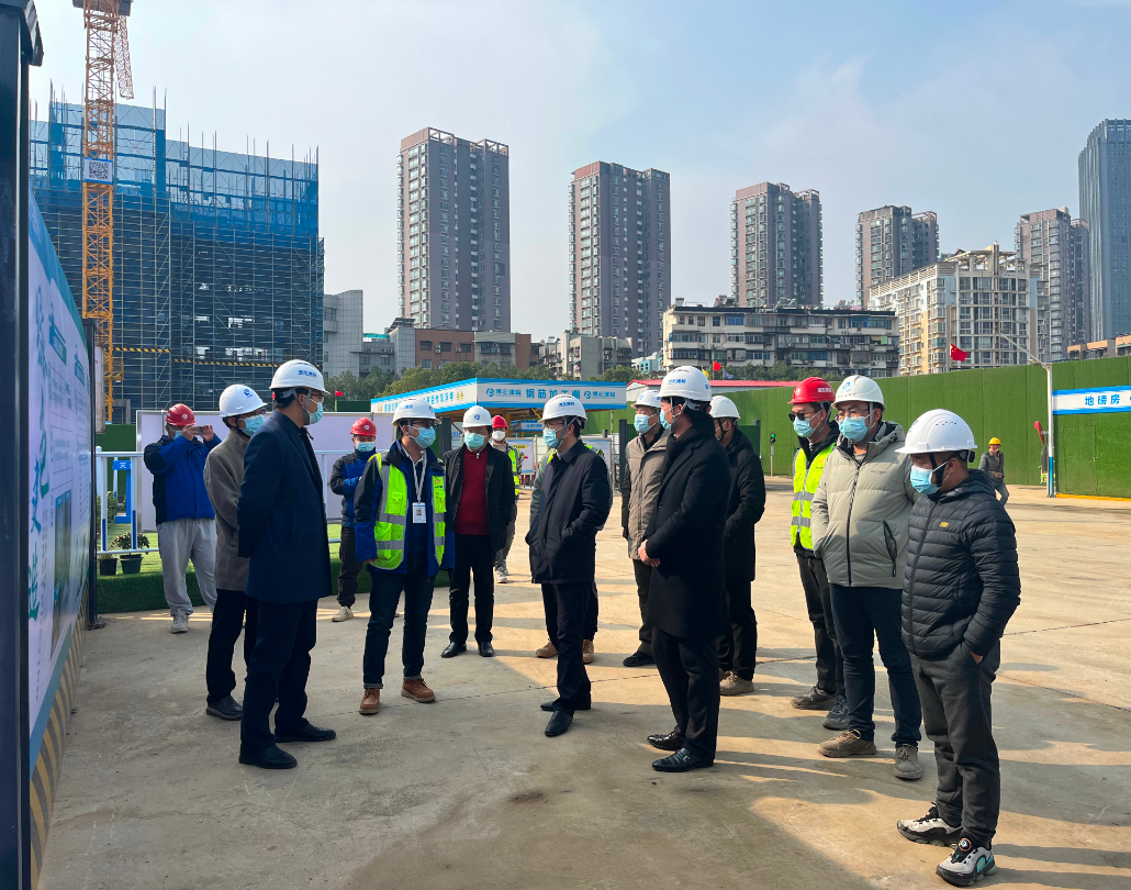 12月7日,湖北省建設科技與建筑節能辦公室主任董文斌、宜昌市建筑市場和建設工程質量安全監督站站長王梁、宜昌市建筑節能推廣中心黨支部書記、主任章鴻一行蒞臨天創覽江府項目現場考察調研,博宏建設集團副總經理周昌文陪同調研。