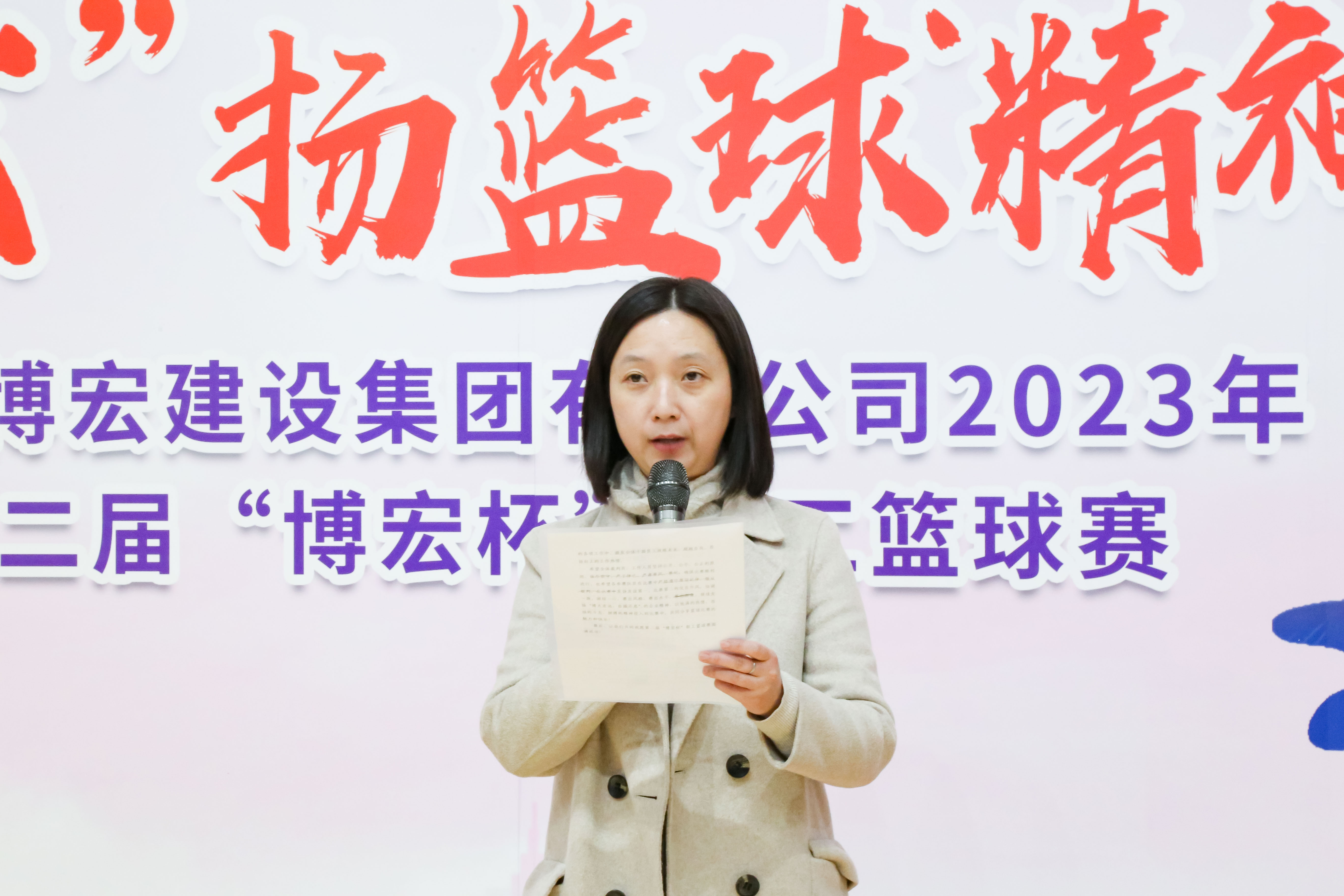 博宏建設集團黨委副書記、工會主席郭一清為開幕式致辭。她希望全體運動員以此次比賽為契機,外強體魄、內修素養,把頑強拼搏、勇攀高峰、精誠團結、永不言棄的籃球精神轉化為干事創業、攻堅克難的不竭動力,不忘初心、接續奮斗,以昂揚向上、奮發有為的精神狀態為引領,助推公司更好更快發展。最后她預祝本次籃球賽取得圓滿成功。