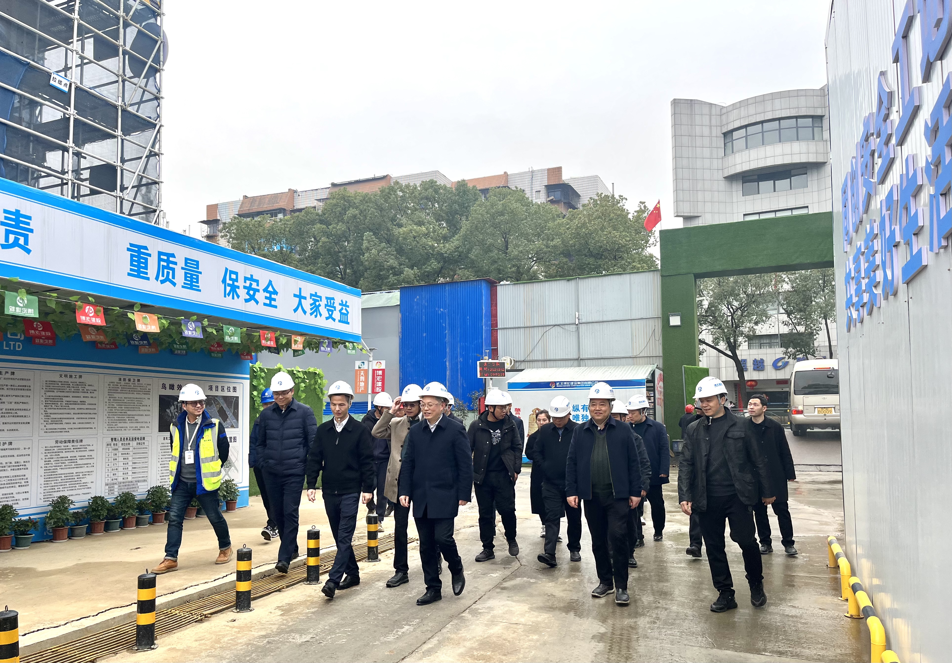 2023年3月2日上午,宜昌市伍家崗區區委副書記、區長譚志軍,區人大副主任楊磊,副區長謝軍及區政府辦、住建局等一行蒞臨覽江府項目調研,博宏建設集團黨委書記、董事長、總經理鄒勇陪同。