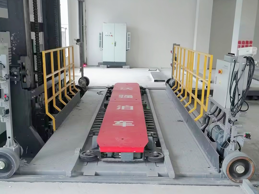 惠民苑社區服務中心改造工程EPC項目配備有地上6層的平面移動型車庫,共有127個車位,由轉盤、端部升降機、橫移臺車和梳齒搬運器等設備組成完整的停車系統。轉盤設置在出入口車廳內,可實現汽車的轉向功能;端部升降機設置在車庫內部巷道的側邊,可實現車輛的豎直提升功能;橫移臺車設置在升降機內,可實現車輛的橫向搬運功能;梳齒搬運器設置在橫移臺車內,采用電機驅動行走輪實現汽車縱移運動,具有運行平穩、承載能力強的特點;車庫總控制設備設置在一層監控室內,用于所有停車機電設備的控制和調度。
