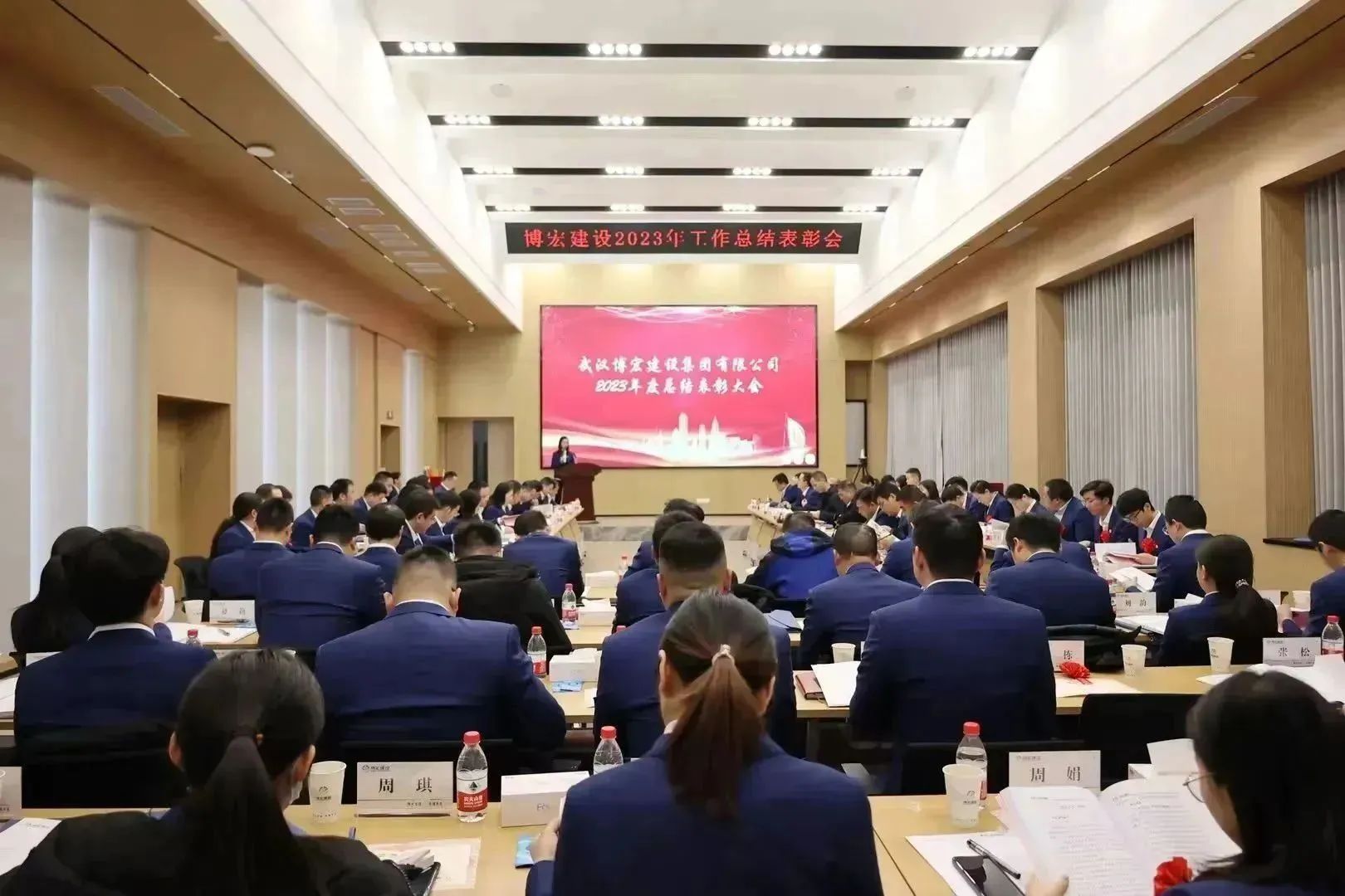 1月26日-27日,博宏建設2023年工作總結暨2024年工作研討會在公司31樓會議室隆重召開。公司黨委班子、部門負責人、項目經理和員工代表共84人參加會議。漢陽市政黨委書記、董事長嚴悌文受邀出席會議。會議由公司黨委副書記郭一清主持。