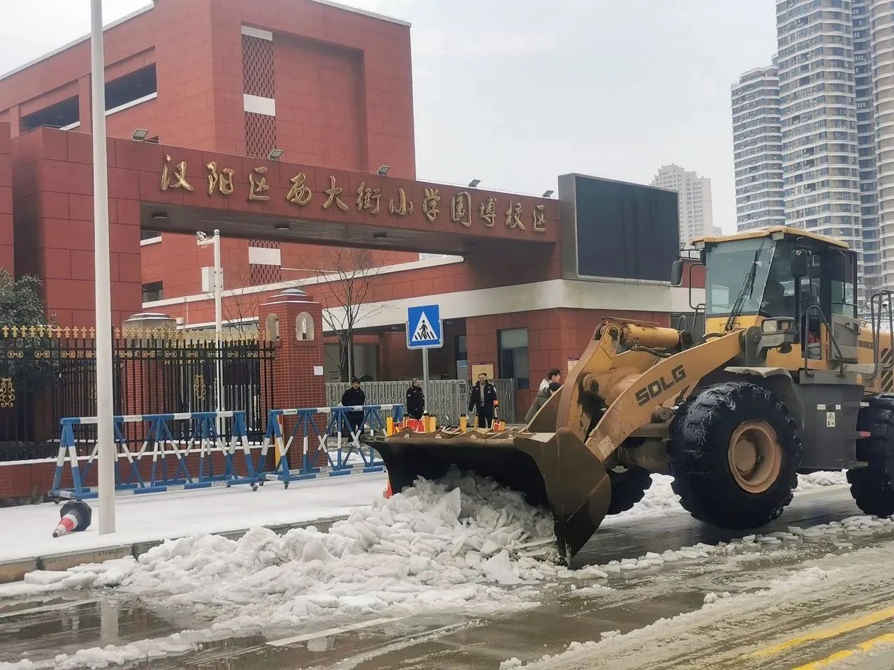 本次應急行動累計出動61人次,鏟車14臺,巡查車輛7臺,撒鹽車輛3臺,撒融雪劑0.5噸,共對五里墩小學、翠微中學、七里小學、武漢市第三中學、西大街至誠小學、墨水湖小學東校區等八所學校道路的積雪進行了清理,并鏟除路面結冰。